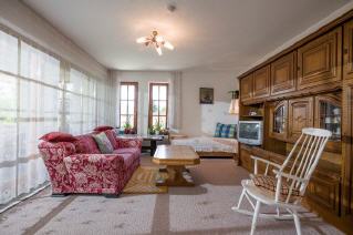 Ferienwohnung 120 m2; mit 3 DZ mit Dusche und WC, 1 EZ mit Waschgelegenheit Du/ WC seperat, Küche mit Micro-Welle, Spülmaschine, Waschmaschine, E-Herd, Kühlschrank mit Tiefkühlfach, WZ mit Kachelofen und TV, Terrasse mit Grill, Liegewiese, Schwimmbad beheizt. |